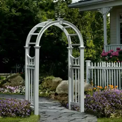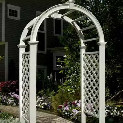 Vinyl garden arbors give you maintenance free, beautiful backyard accents with our guarantee that they will not yellow or fade. Constructed of high-grade PVC vinyl with a 20-year warranty, the formula contains UV stabilizers to protect the vinyl from harmful ultraviolet rays so the arbors will not fade over time. Use them in your garden-scape or a wedding ceremony in any backyard.
