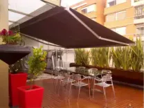 The Brasilia Slim is a specialized retractable patio awning that offers your house a modern, sleek style. The fabric can be fully retracted into the aluminum casing for complete protection and clean lines. With an adjustable pitch that efficiently protects you from the sun, you can finally relax and enjoy your deck sheltered from the sun's scorching heat.