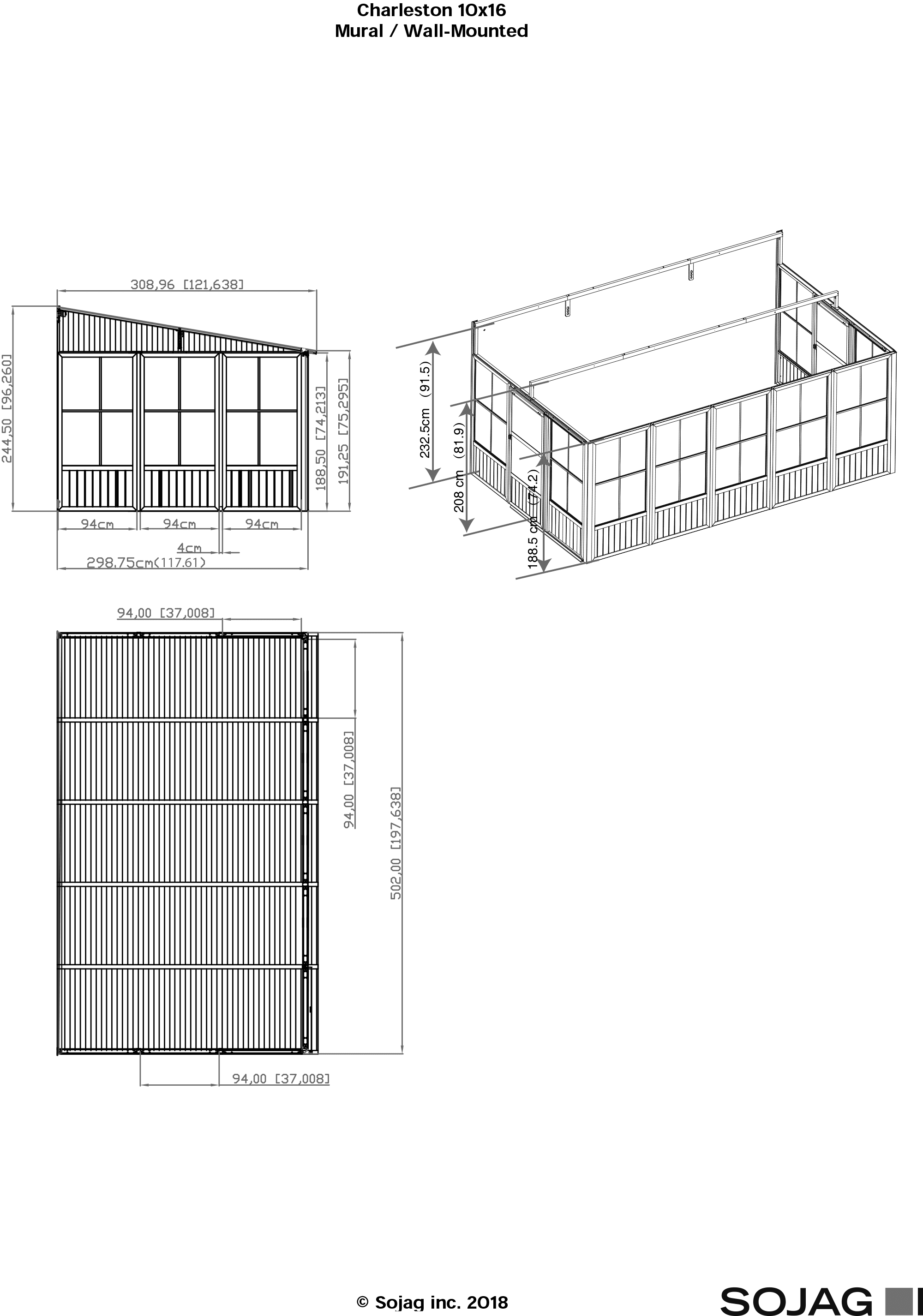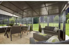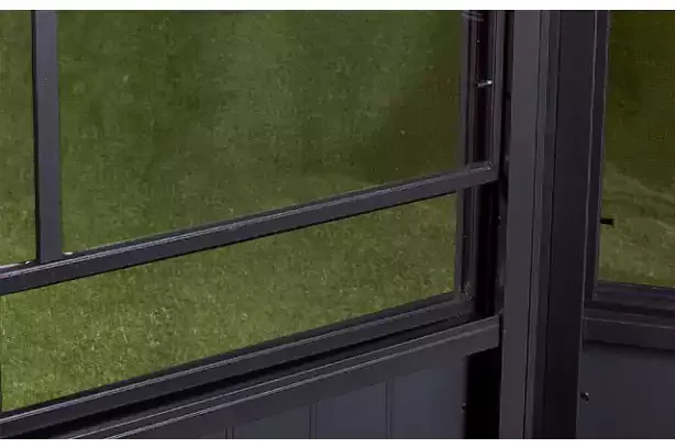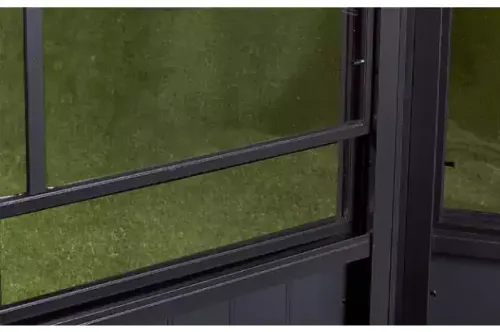 The Sojag solariums boast a solid aluminum frame with elegant galvanized-steel roof panels. Sliding doors can be installed on any wall of your choice with a easy to use door latch located at the middle of each frame.