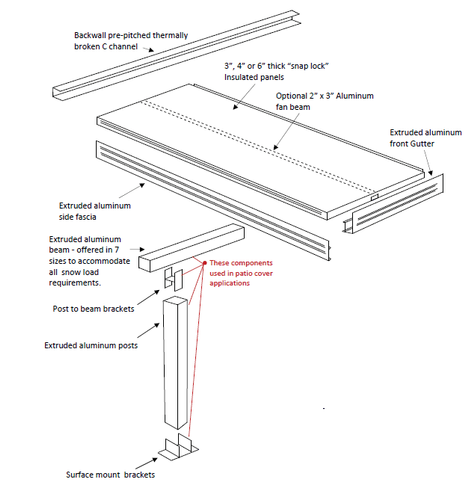These panels are used in our insulated patio covers as well as our permanent 3 season deck enclosures. More information on the beam and post understructure can be found on our beam detail page.