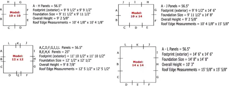 The drawing shows some of the measurements and details you may need to ensure you have the space to install the Balnea on your deck or patio. The room should be screwed to a deck or patio for maximum strength in summer storms.