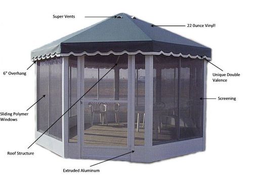 A heavy duty, waterproof, 22 oz vinyl top gives this classic shape a long lasting durability. Strong extruded framing and galvanized steel hardware come together to allow you to start enjoying the outdoors, without pests, as well as with protection from the sun, wind and rain.