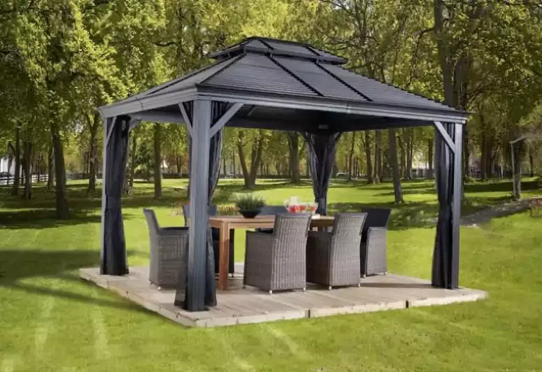 • No need to store the roof away for the winter. Any accumulation of snow should always be removed from the gazebo.
