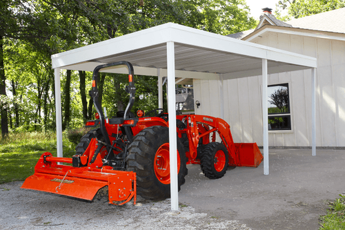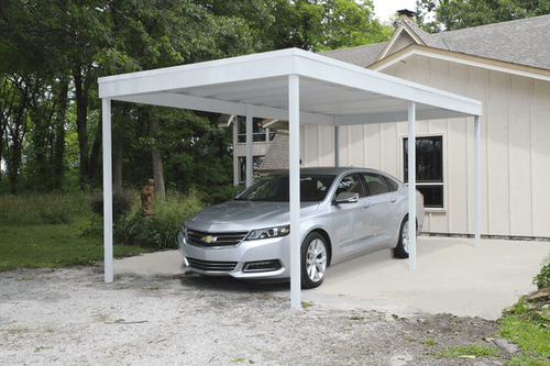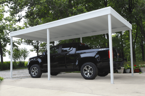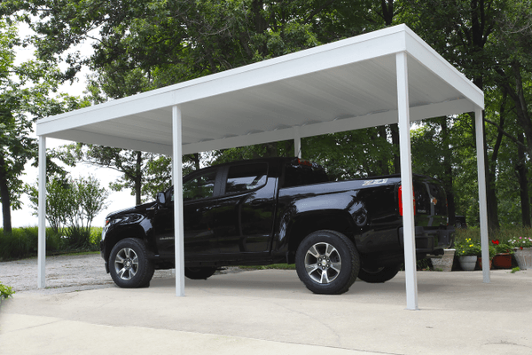 The Free Standing Carport and Patio Cover from Arrow is a newly re-designed carport and multi-use shelter for maximum protection against the elements. This carport features a galvanized steel roof with horizontal panels, and an industrial steel frame that has been powder coated to resist corrosion and rust.