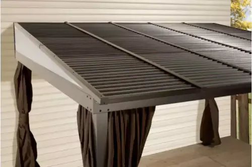 Roof made of retractable aluminum composite panels (ACP).