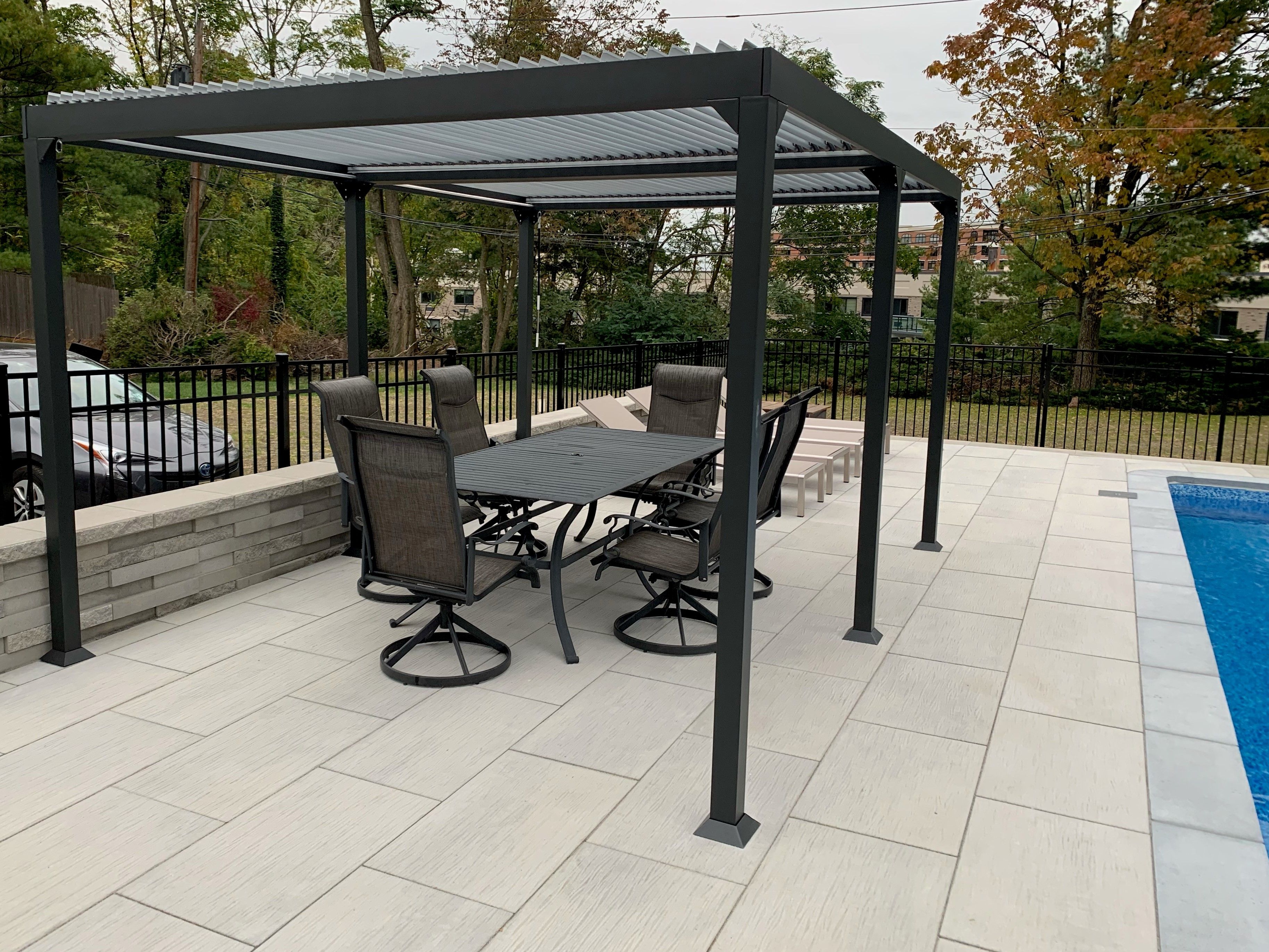 Easy to operate, watertight louvres offer the convenience and protection you need on demand. Maintain the look of a modern pergola, but with the convenience of a solid patio cover when needed. Add the optional screens to any openings to protect against the setting sun.